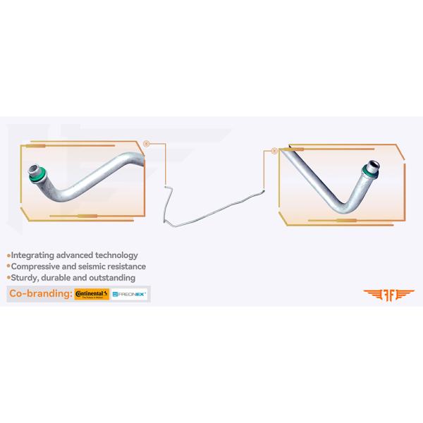 Our air conditioning ducting is primarily constructed of aluminum, combined with highly flexible hoses, allowing it to bend and move easily in tight spaces. It seamlessly integrates with other components of the vehicle's air conditioning system, making installation a breeze. We use high-quality rubber or synthetic materials that are resistant to pressure, corrosion, and aging, and incorporate reinforced braiding to ensure excellent pressure, vibration, and weather resistance, making it easily resistant to complex road conditions and extreme temperatures. We understand that safety is paramount and strictly adhere to industry standards to provide you with a long-lasting, stable, safe, and worry-free air conditioning system.
